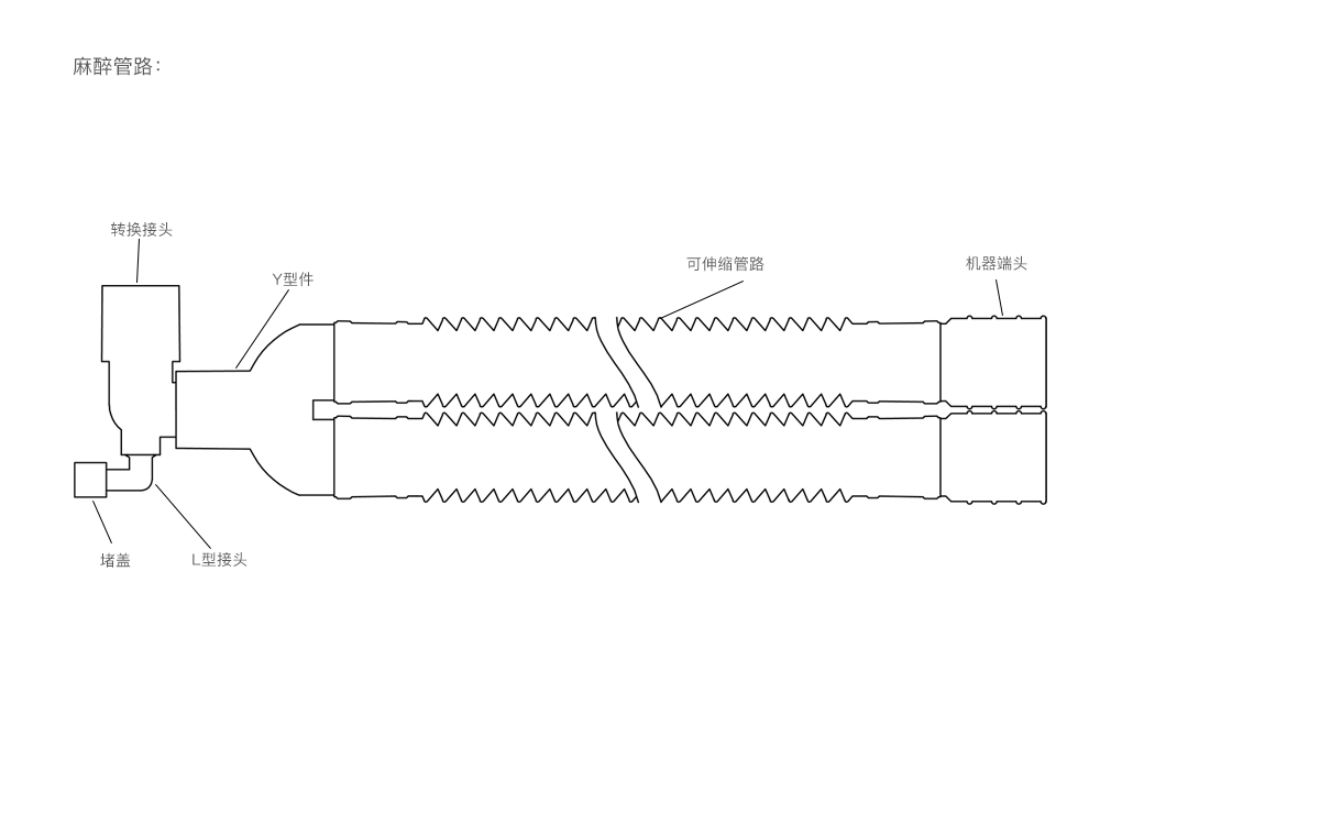 2.The product comprises a machine-end connector, a Y-shaped connector, tubing, a parallel connector, a fixing clamp, a water collecting cup, an adapter, and transparent tubes. It is packaged individually.