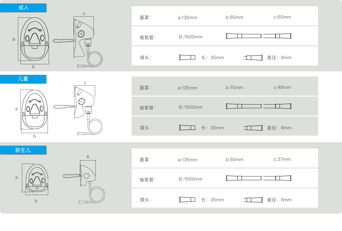 2.產(chǎn)品由面罩、輸氧管、專用接頭組成,獨立包裝。