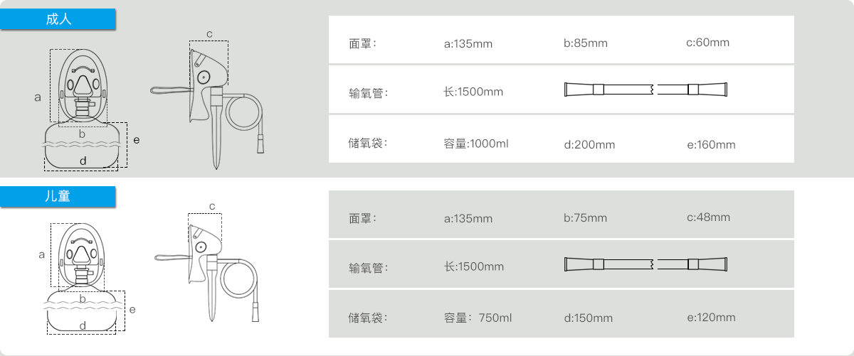 2. 產(chǎn)品由氧氣面罩、儲氧袋、單向閥、輸氧管、專用接頭組成,獨立包裝。